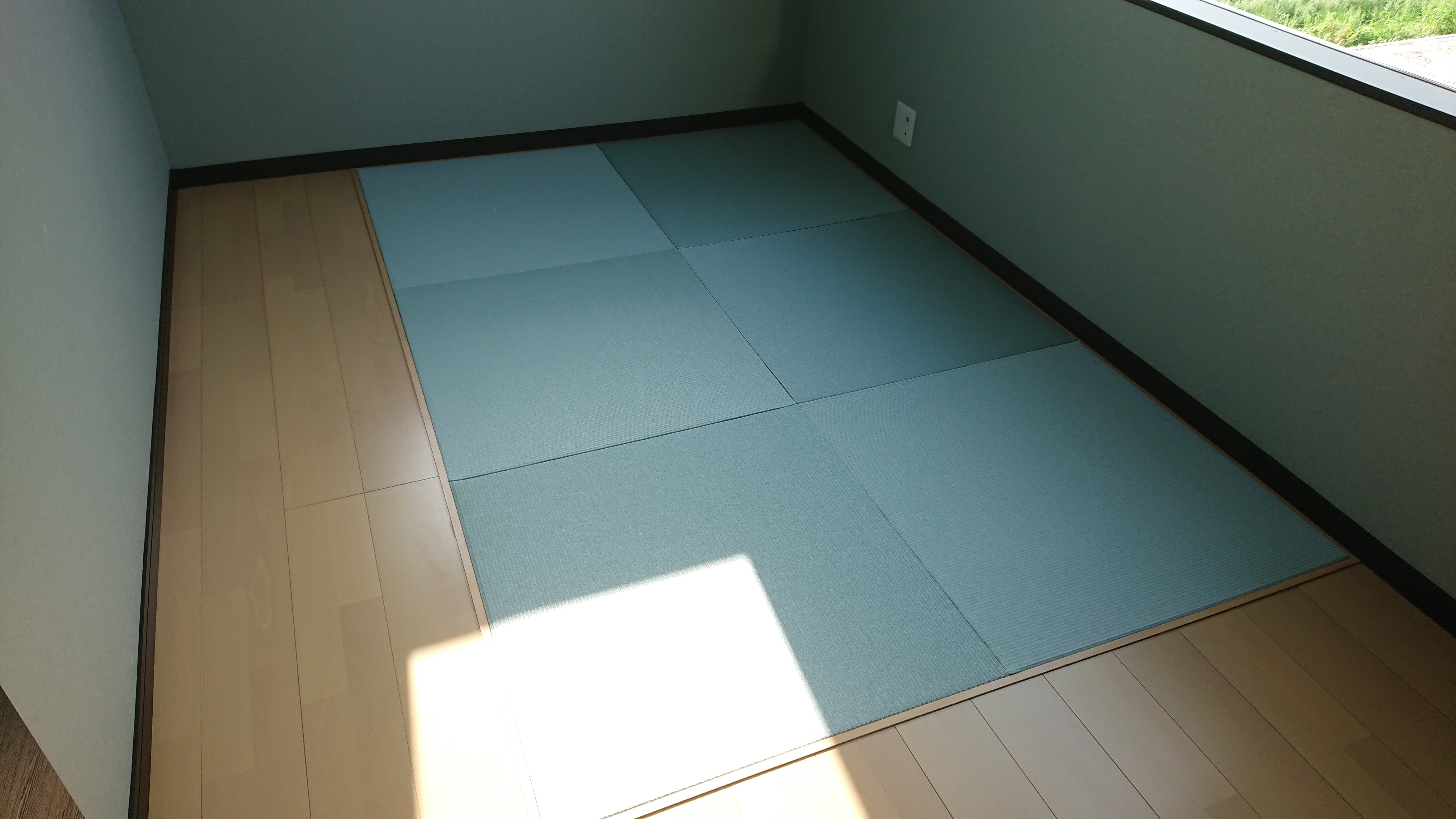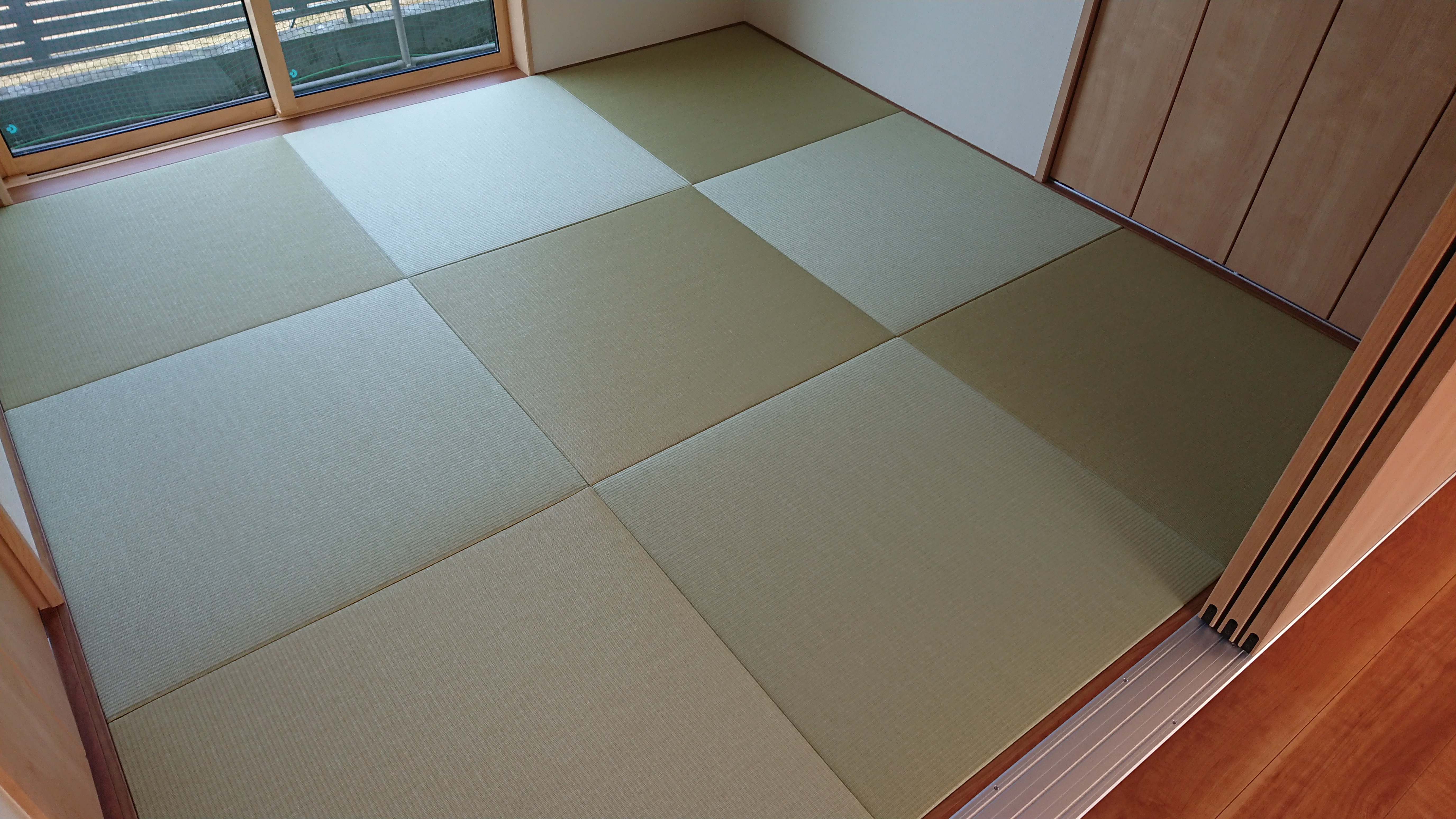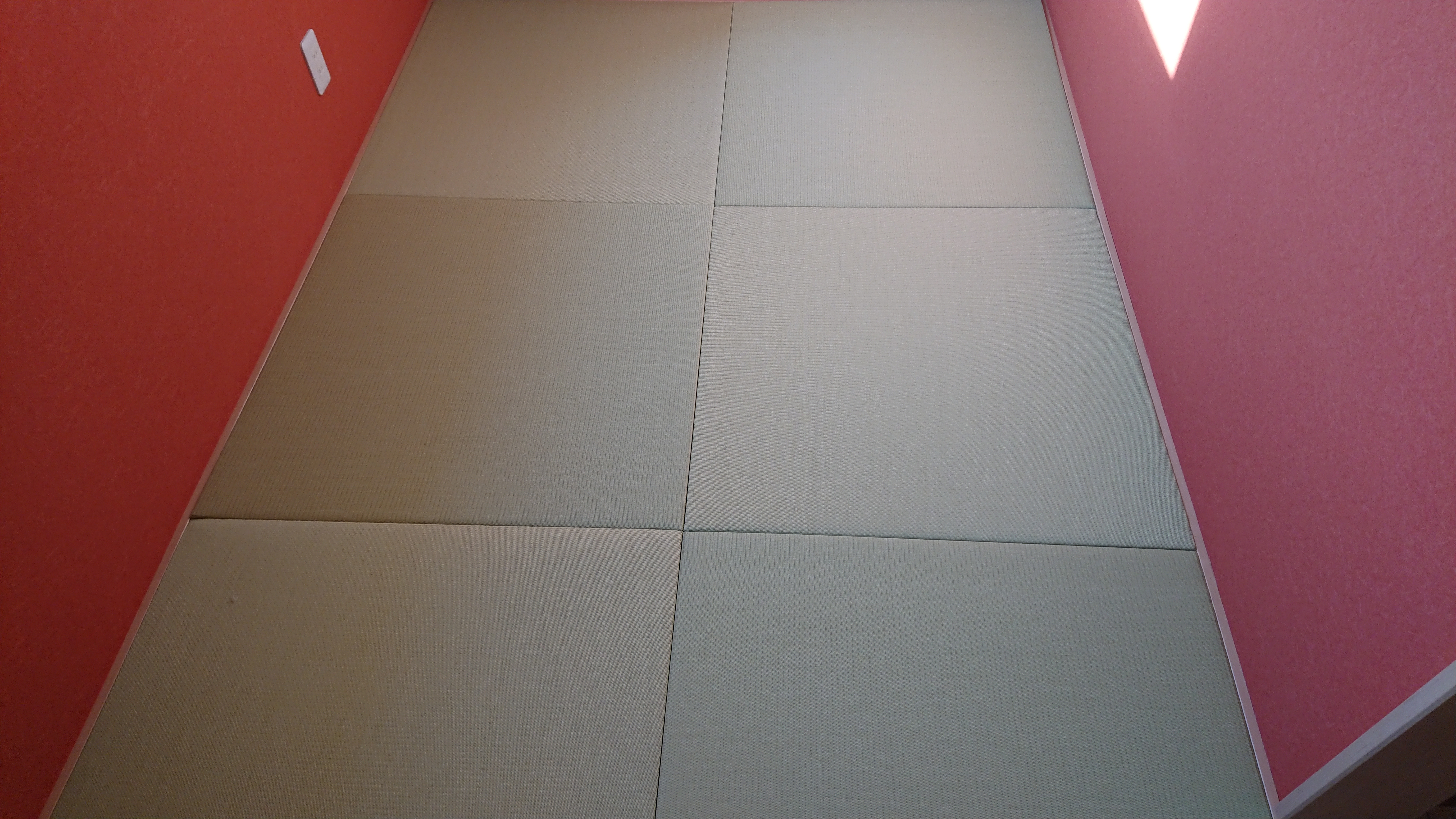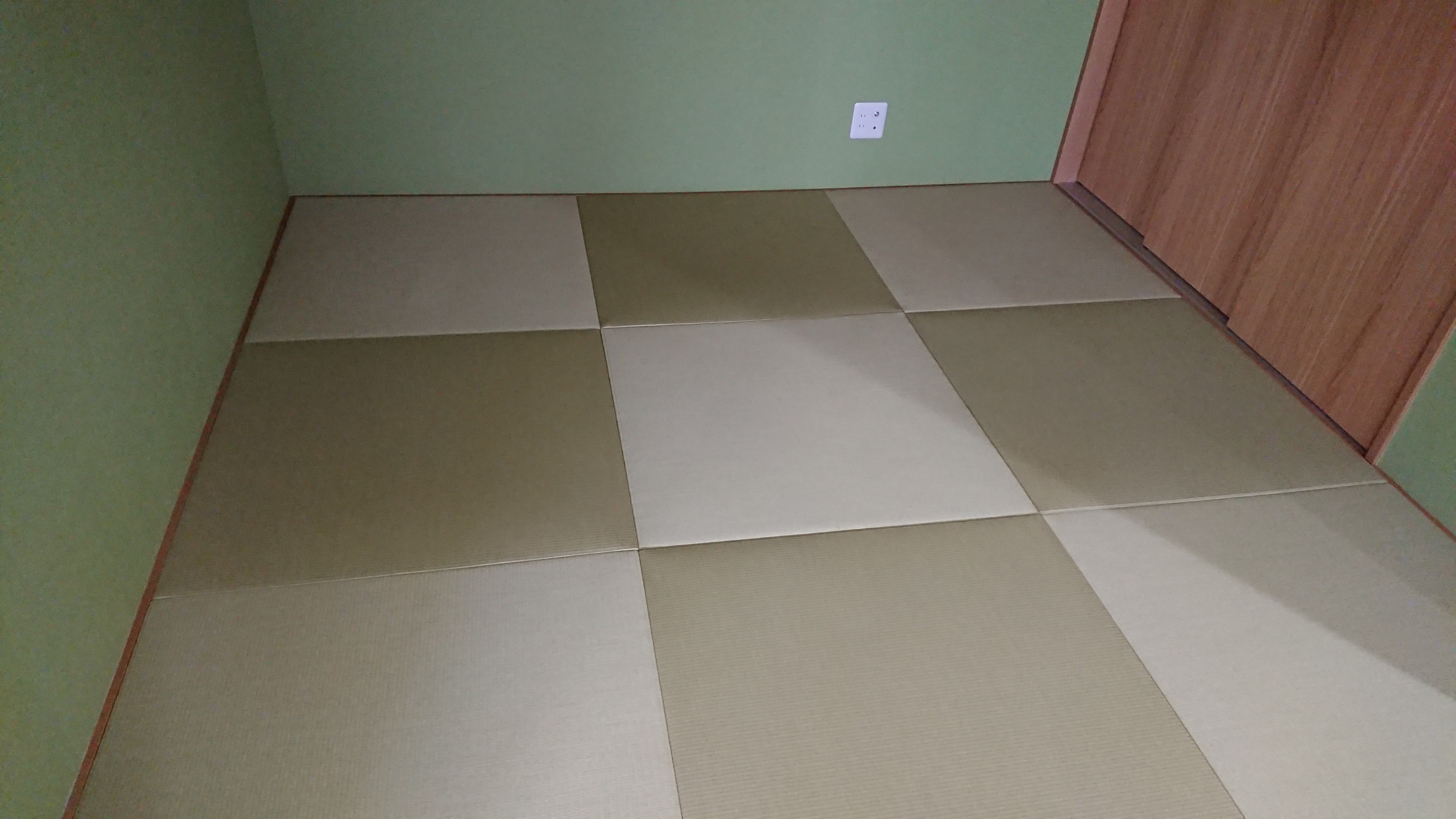 清流カクテルフィット№21 (銀白 × 若草色)の縁無畳4.5畳間です。