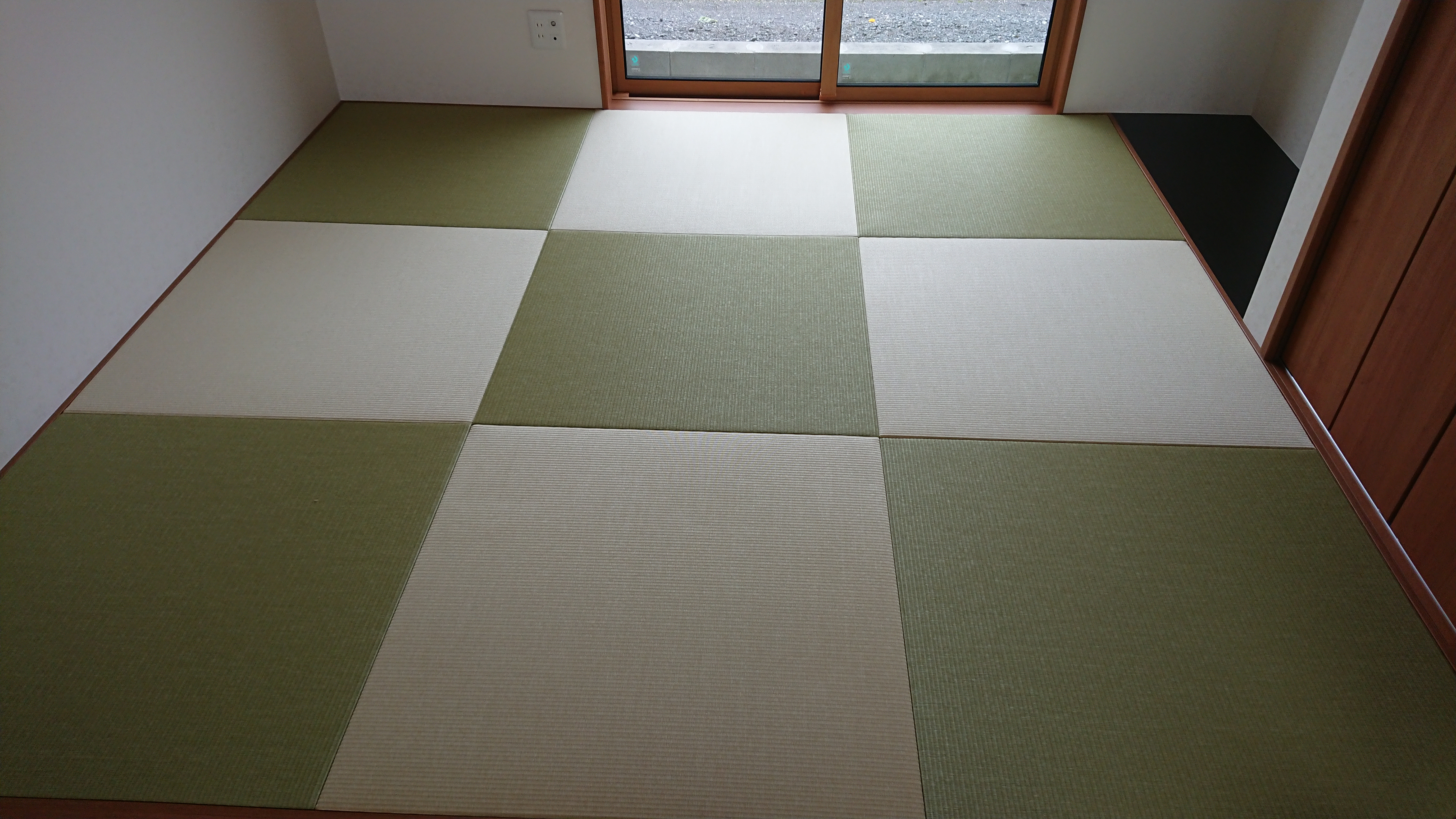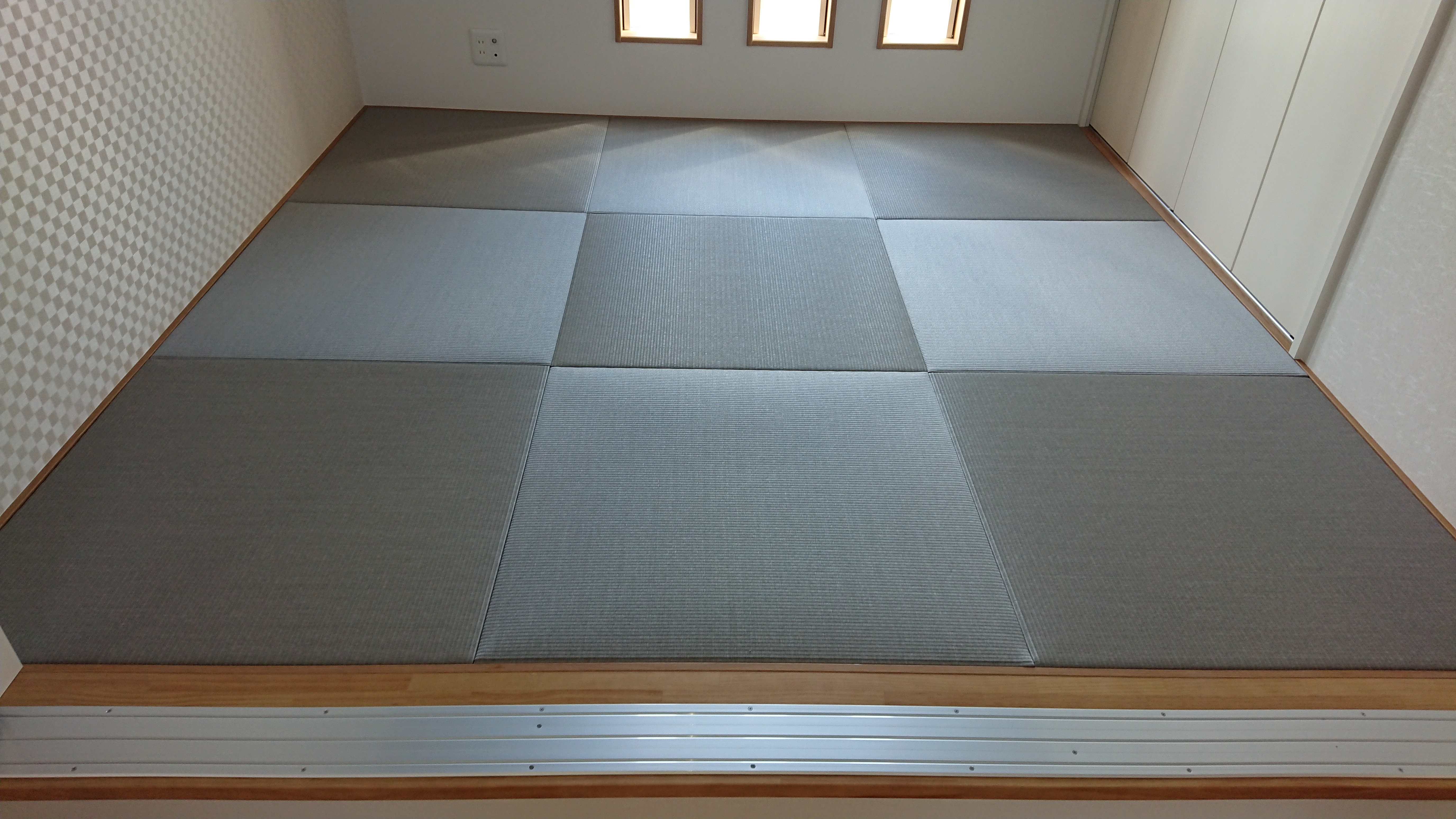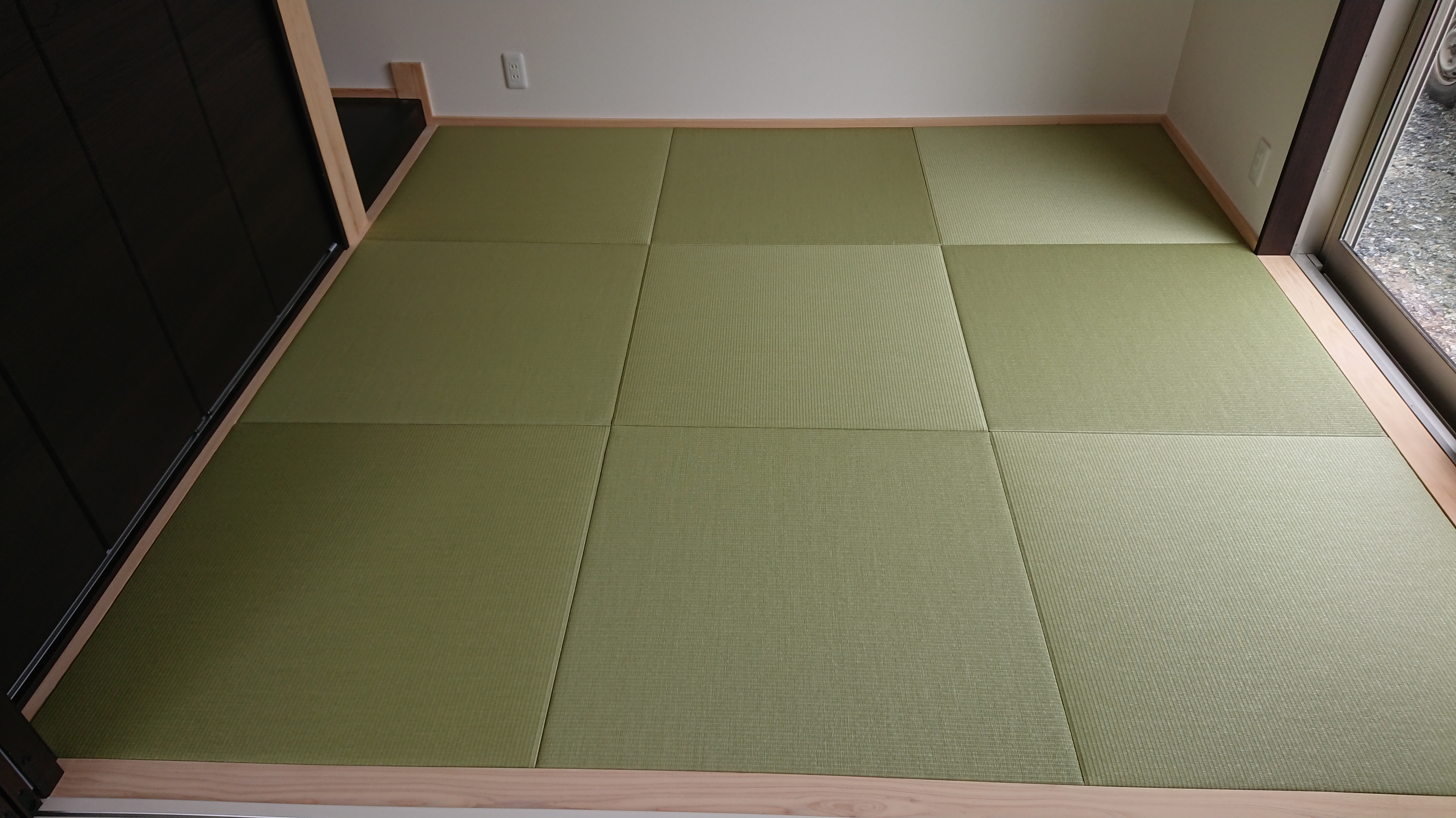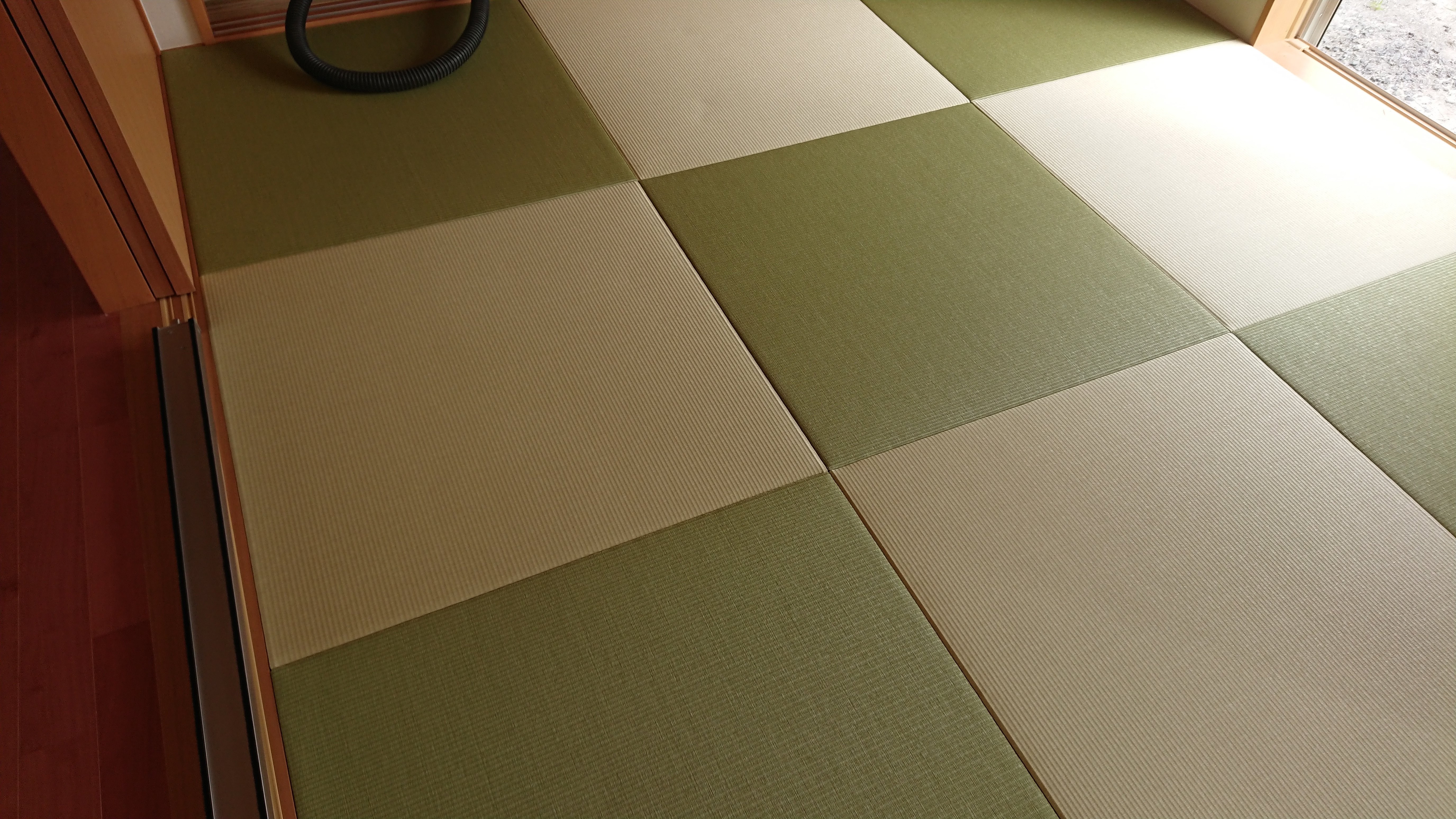 清流カクテルフィット№21 (銀白 × 若草色)の縁無畳4.5畳間です。