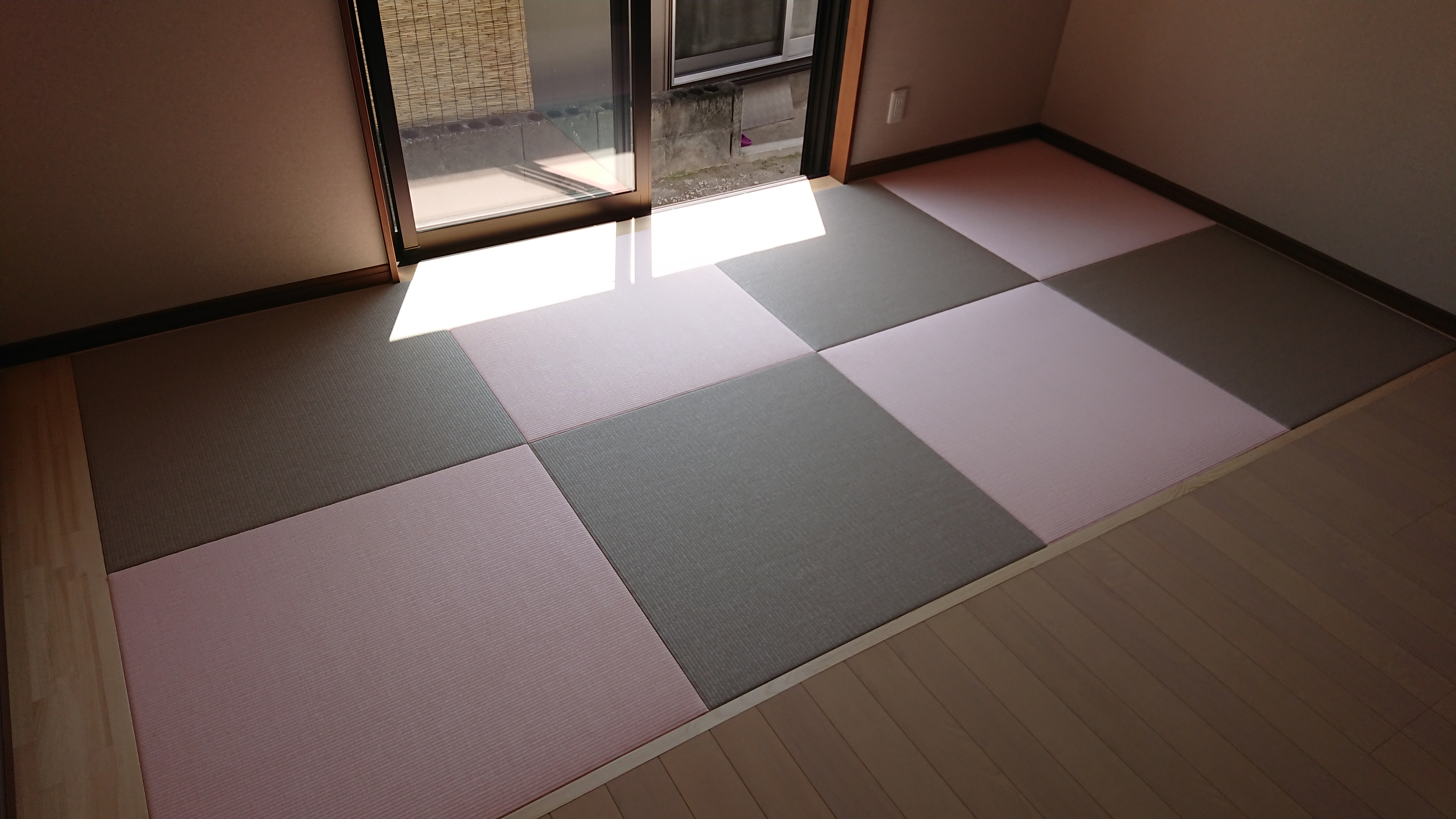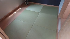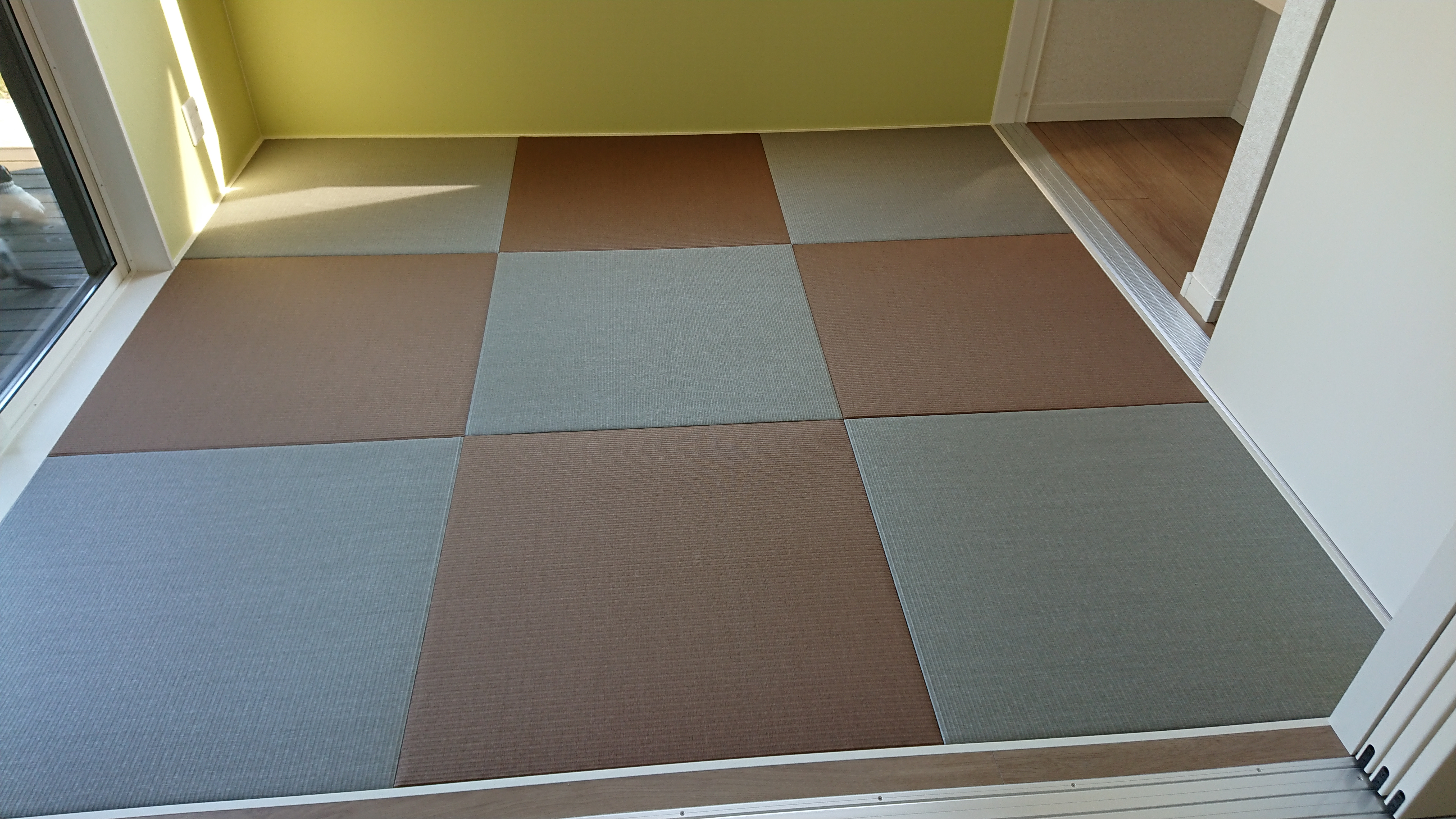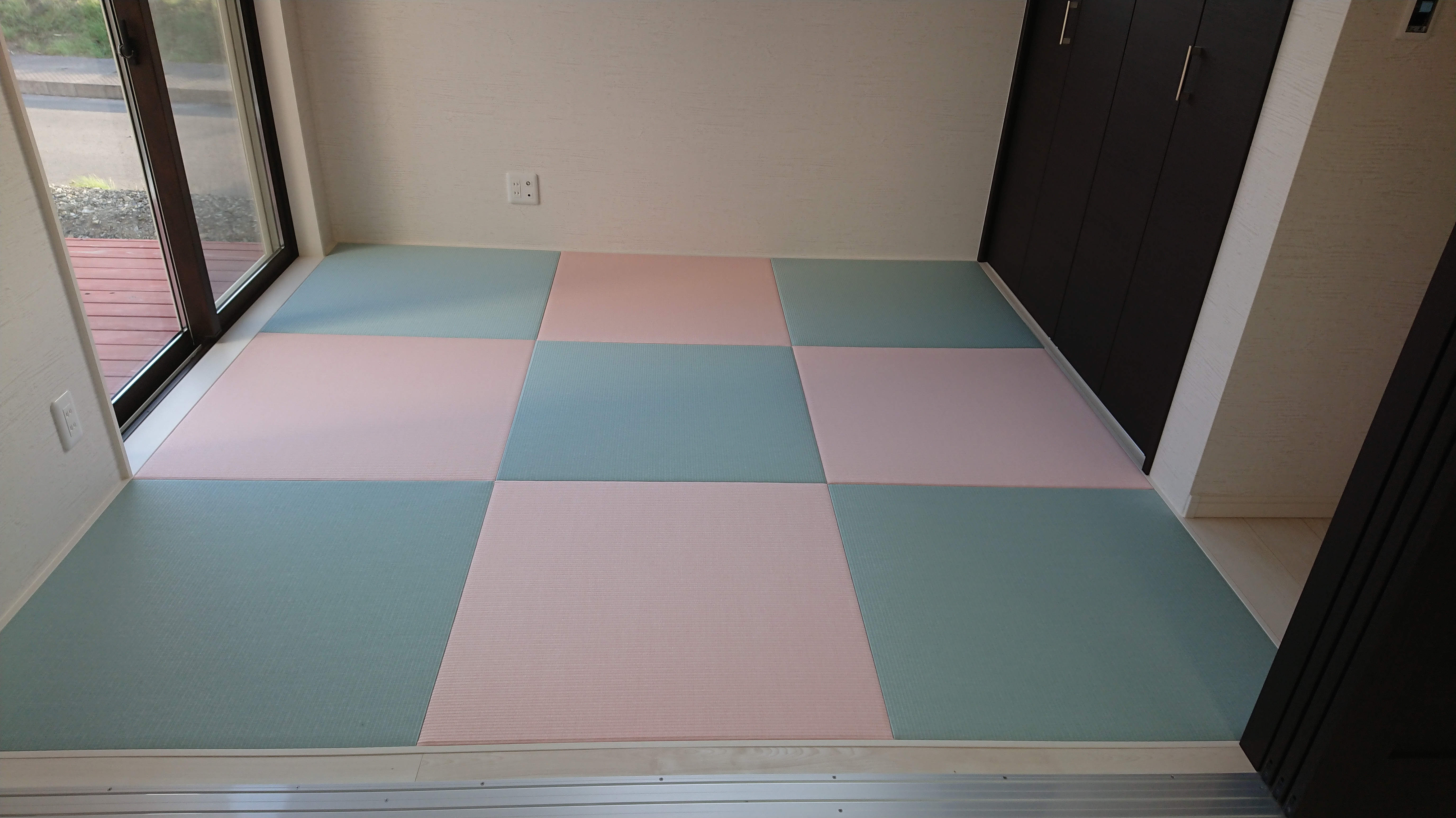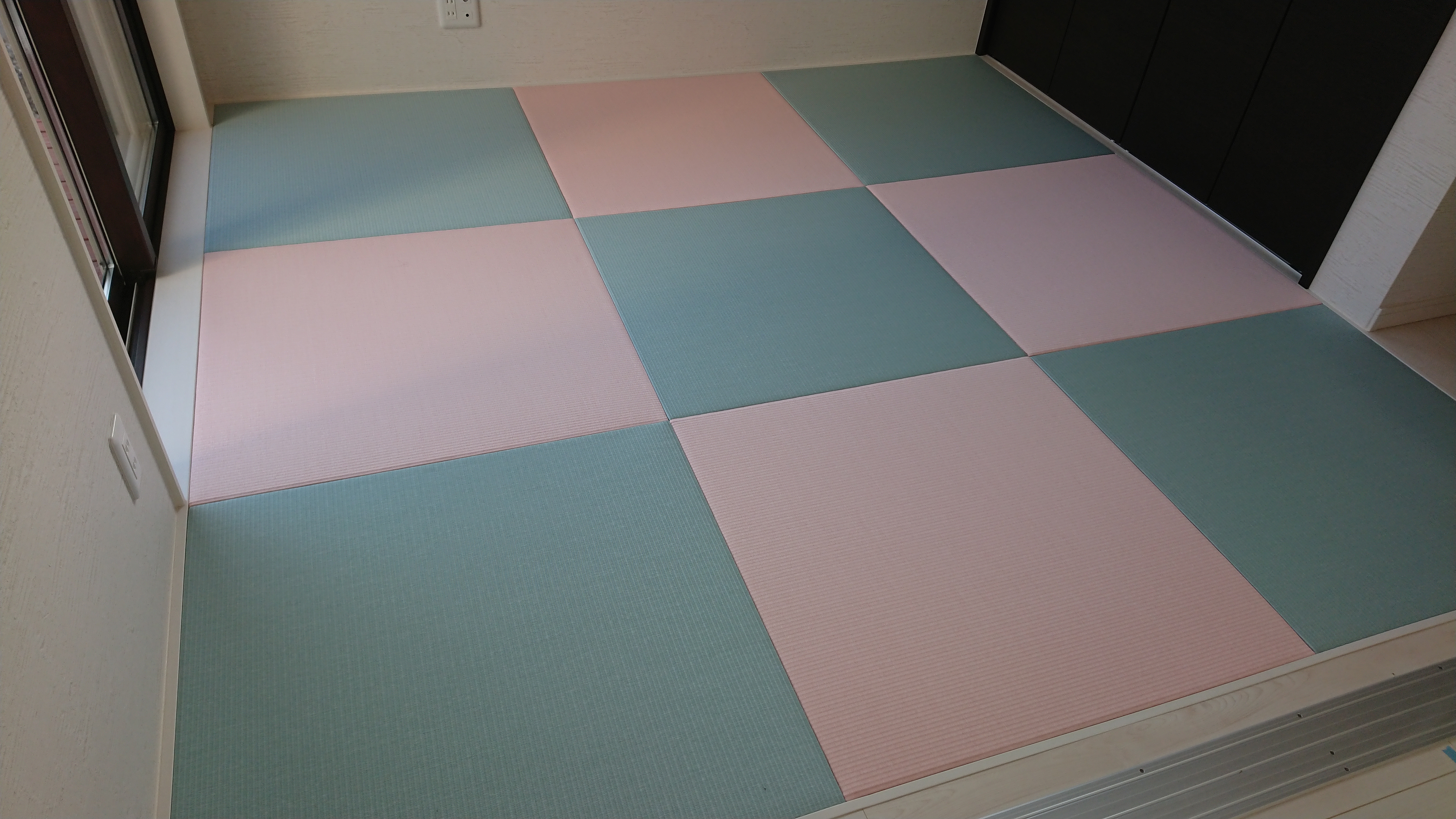 清流カクテルフィット№21 (銀白 × 若草色)の縁無畳4.5畳間です。
