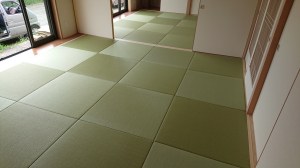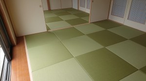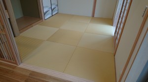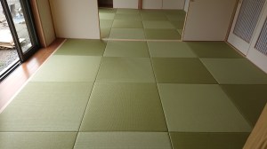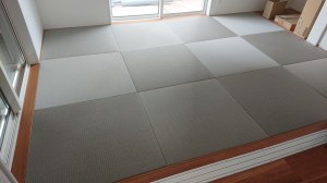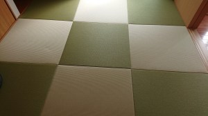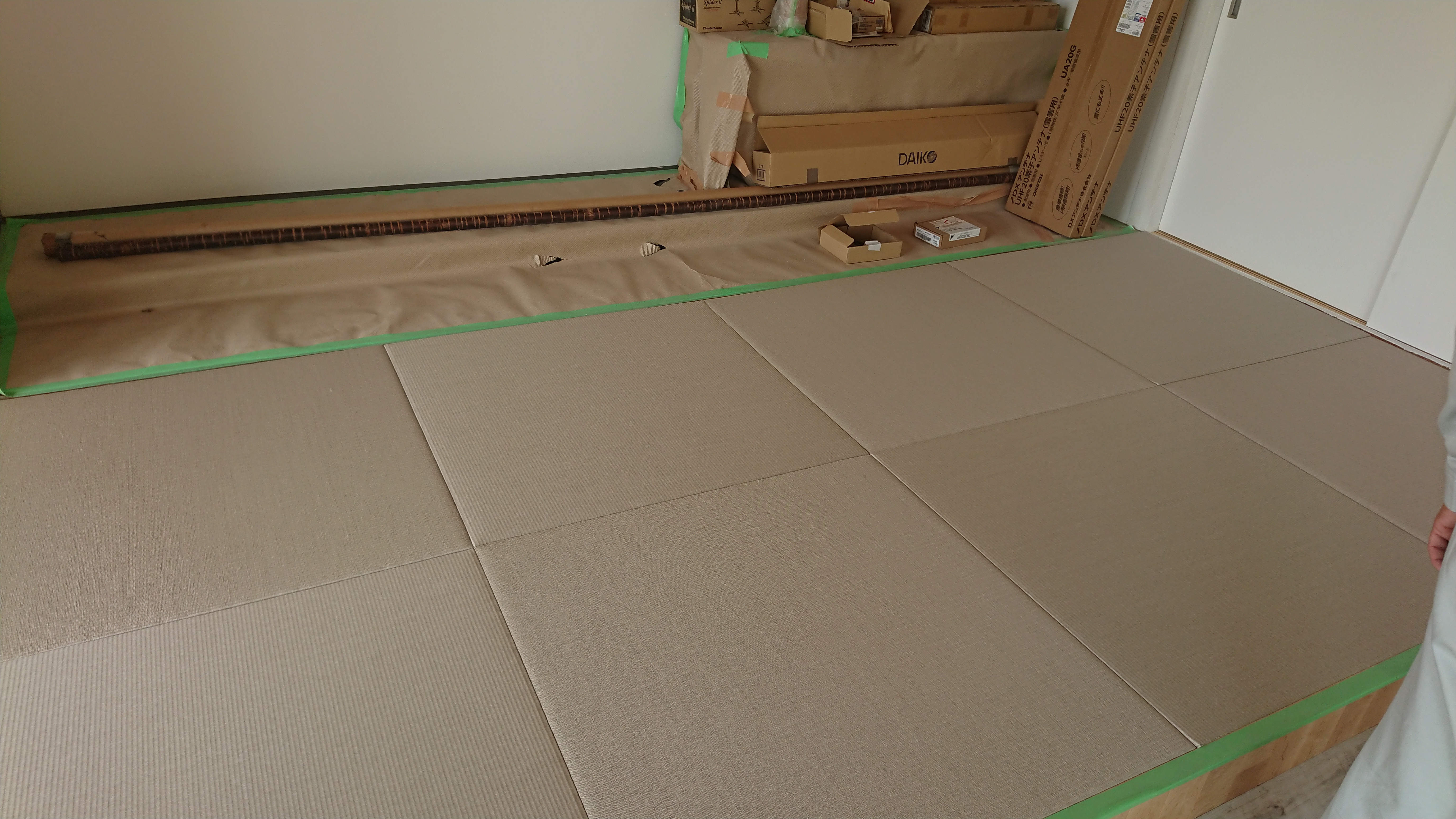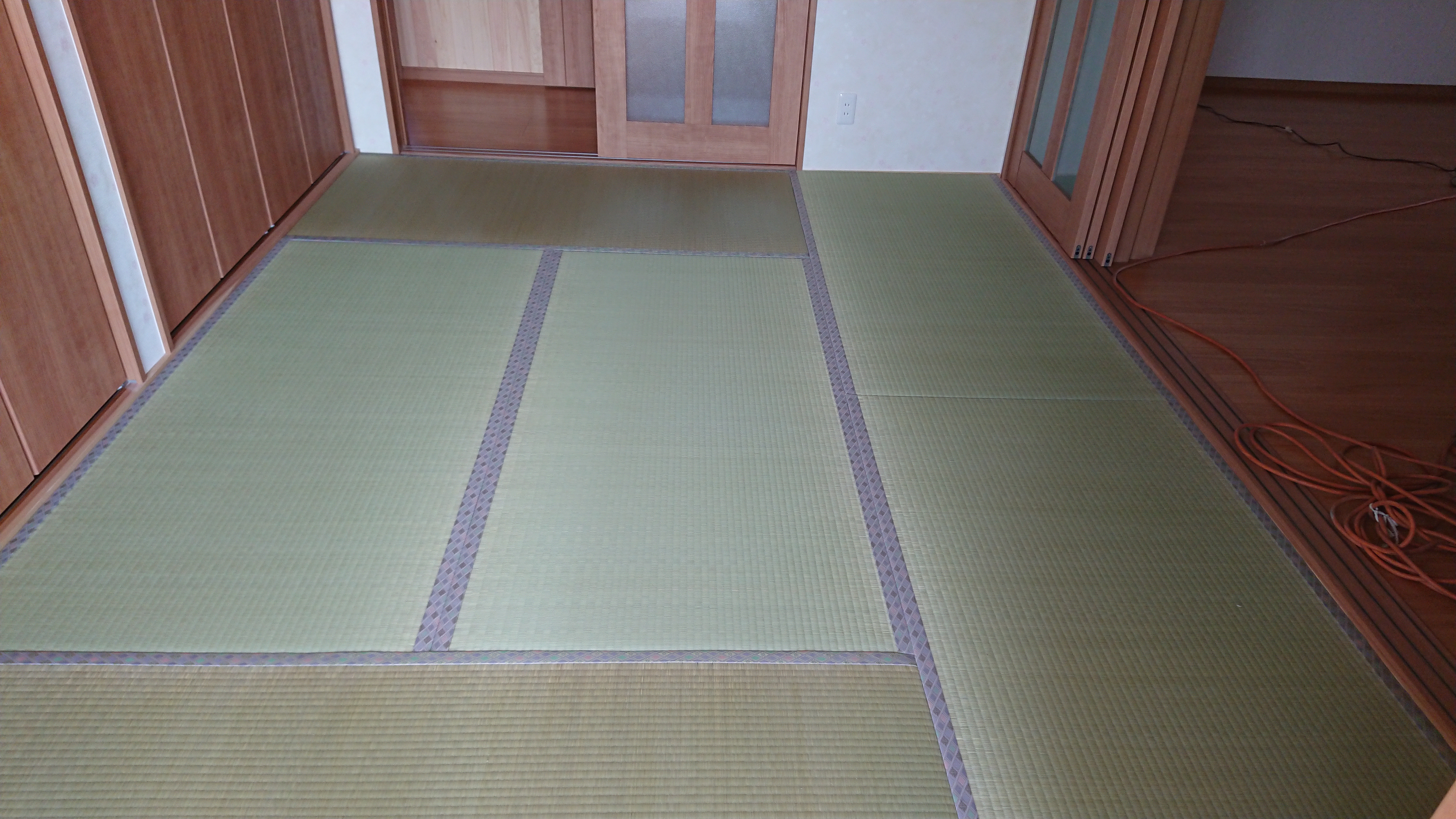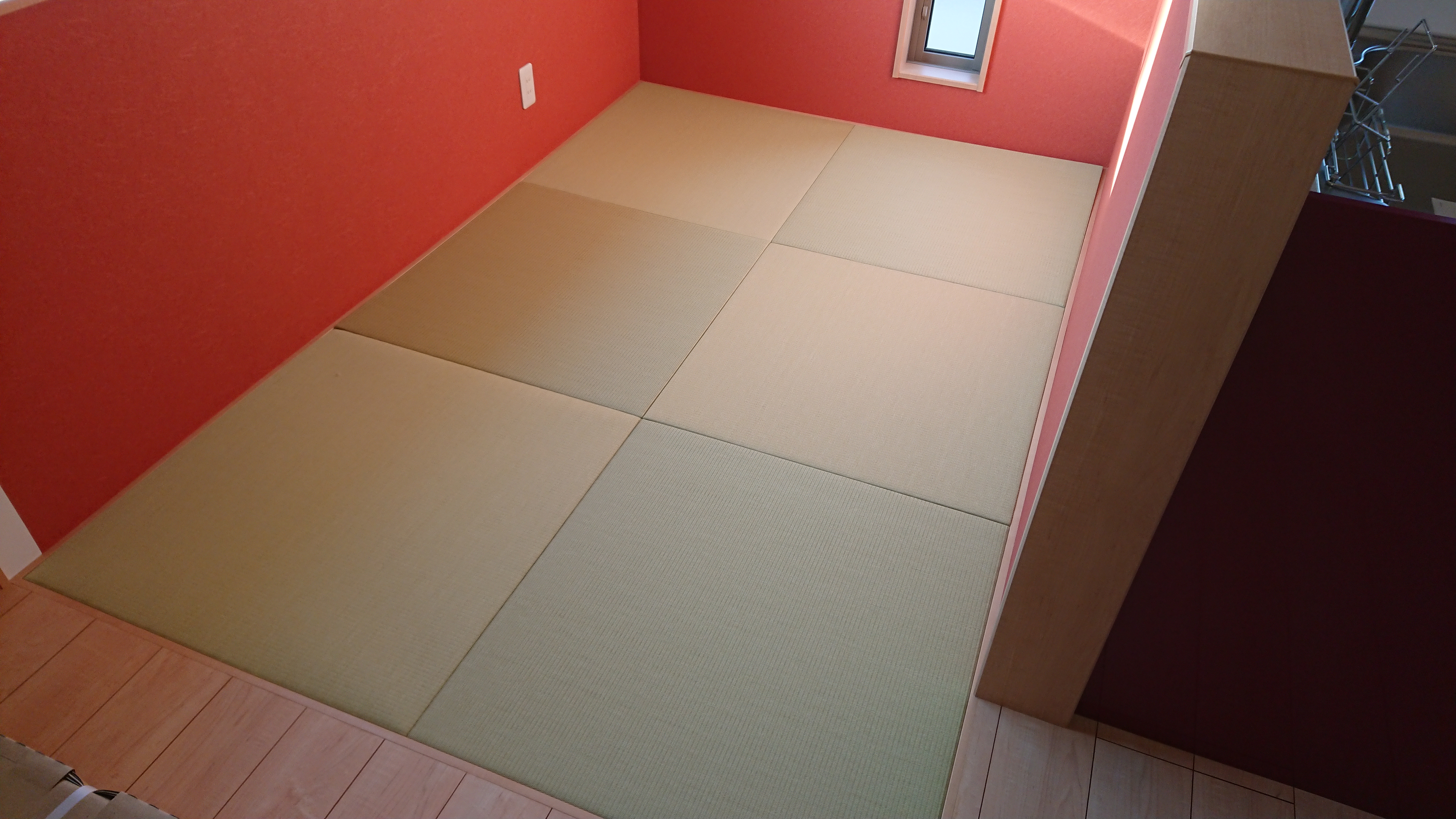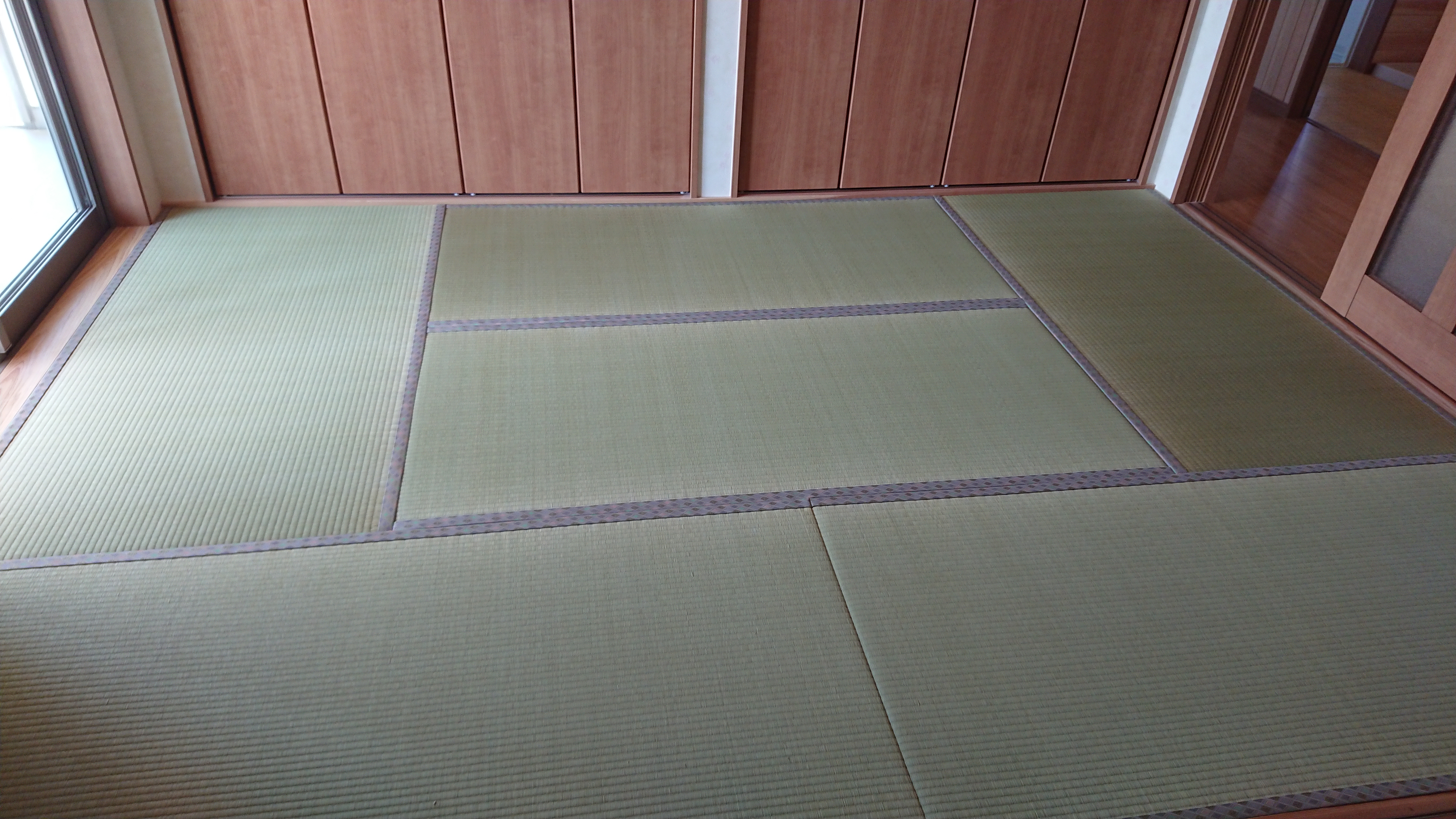 清流カクテルフィット№21 (銀白 × 若草色)の縁無畳4.5畳間です。