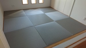 清流№11 銀鼠色 × №19 胡桃色の縁無畳4.5畳間です。