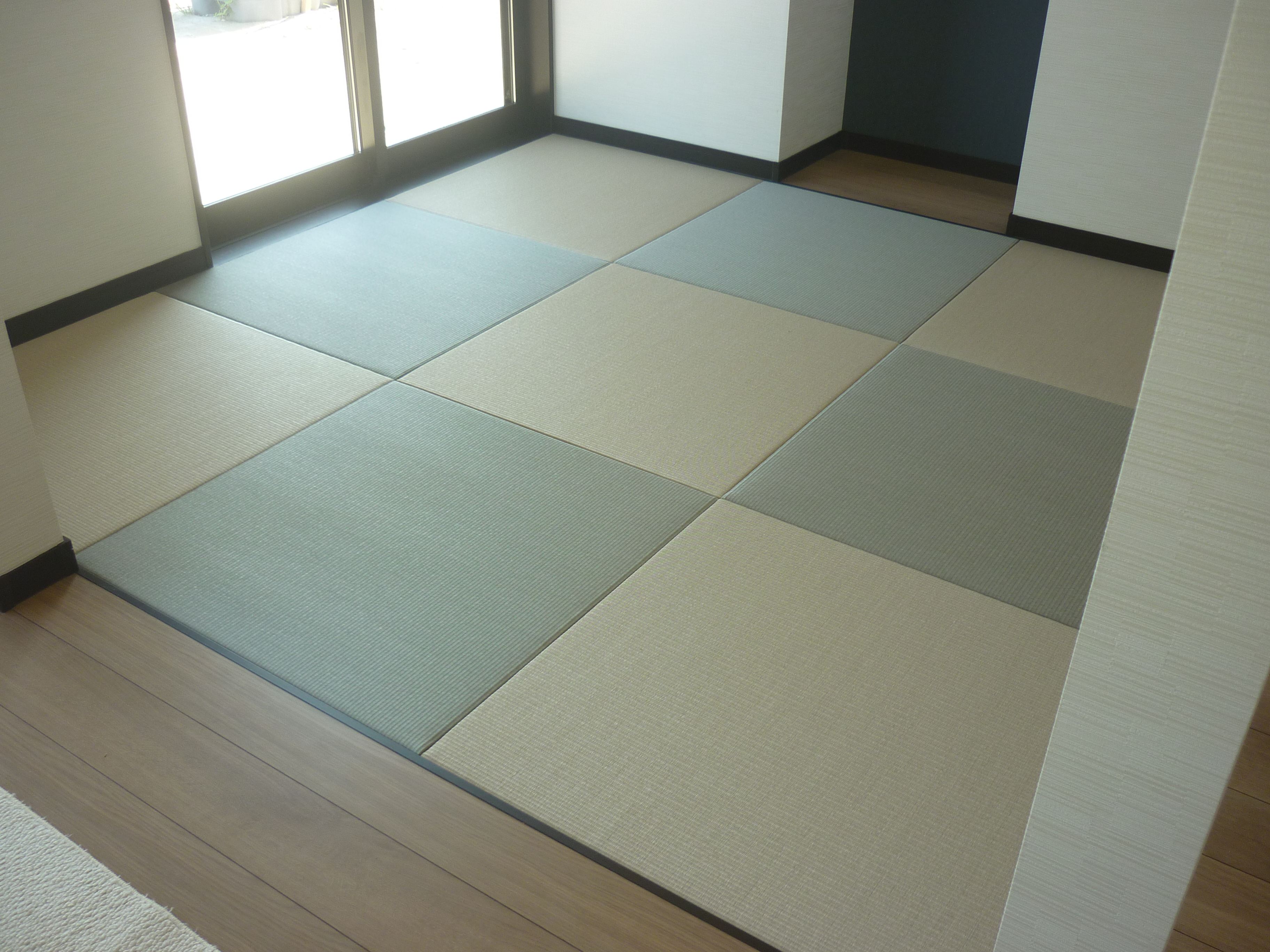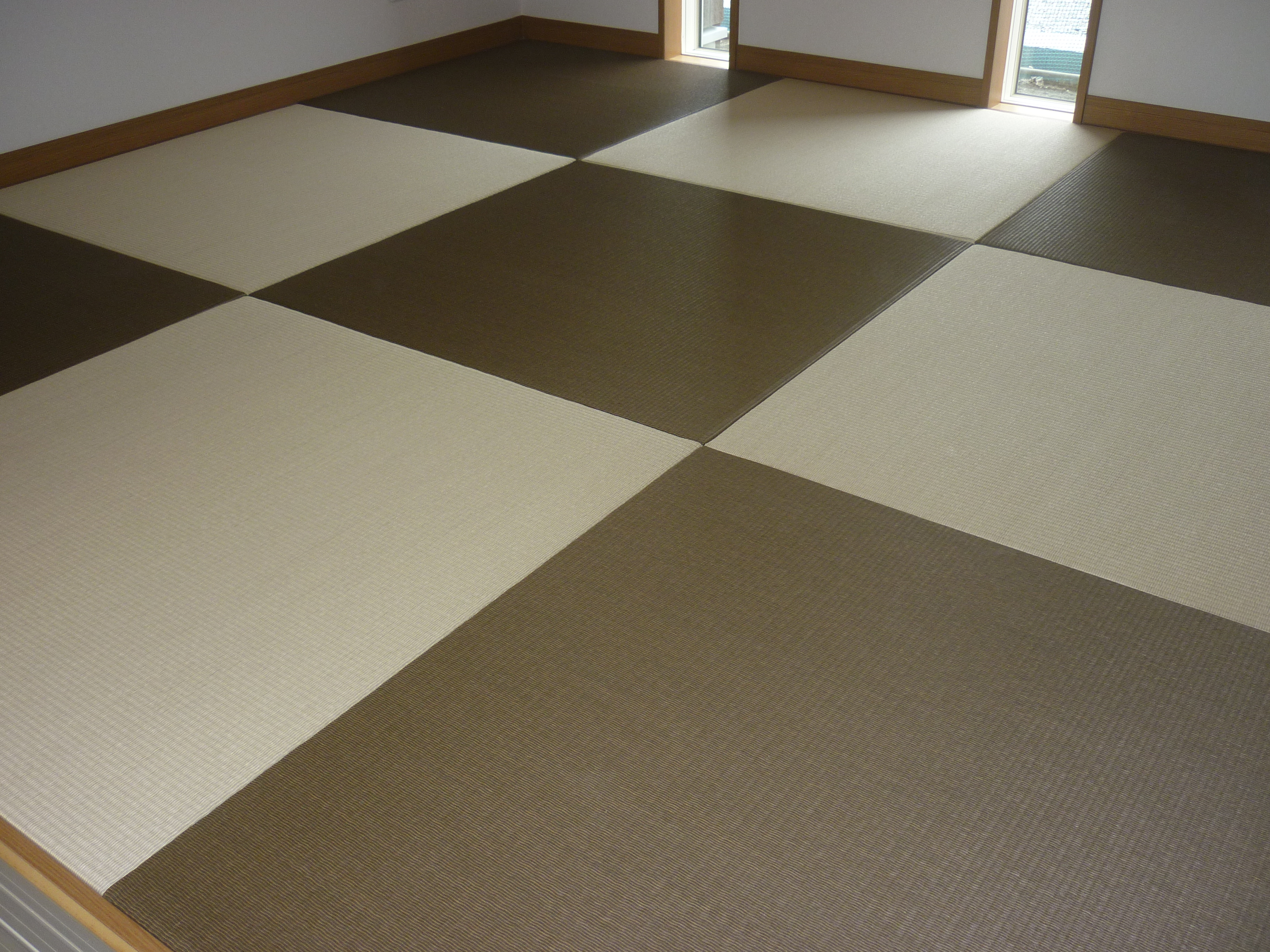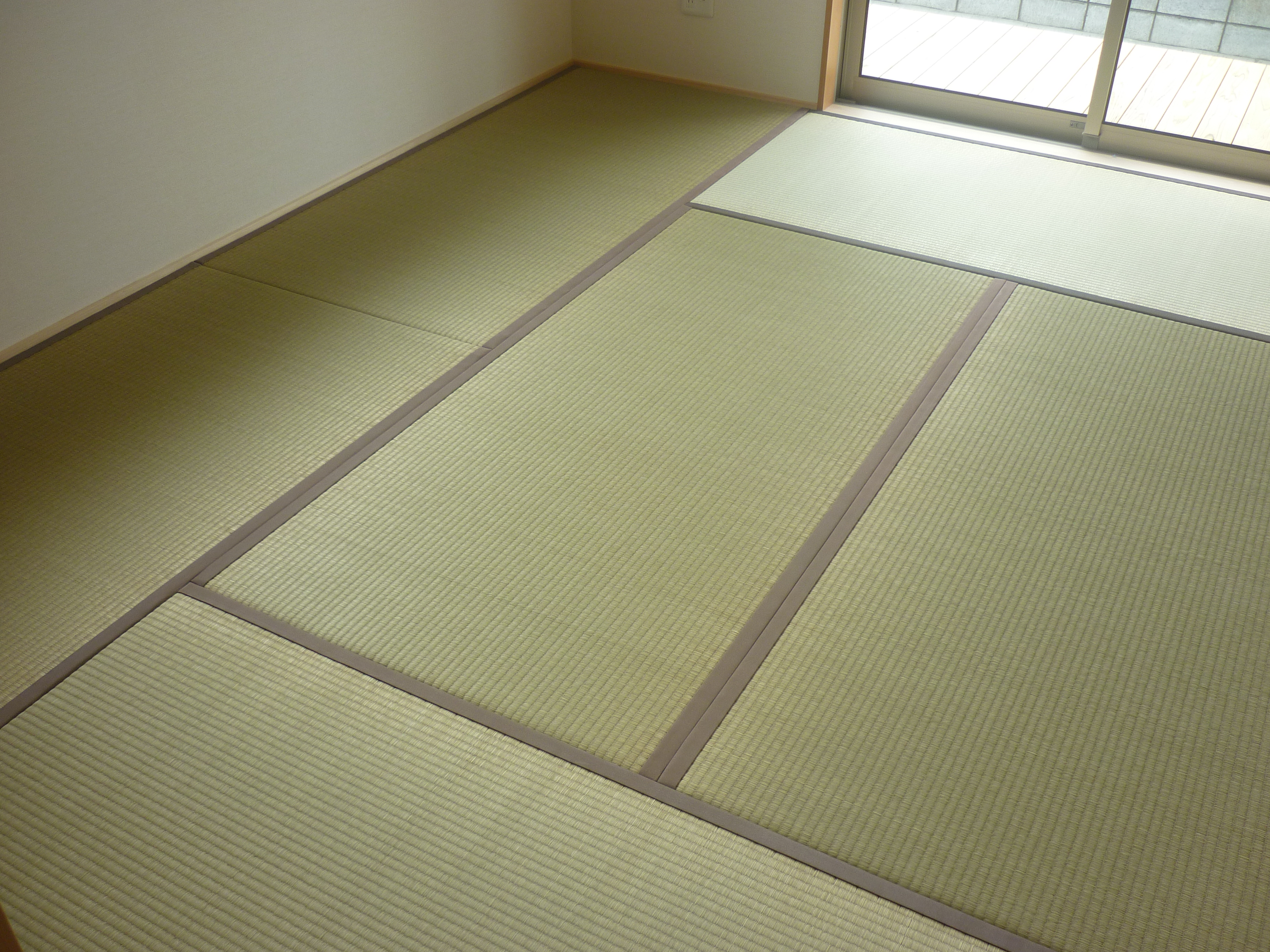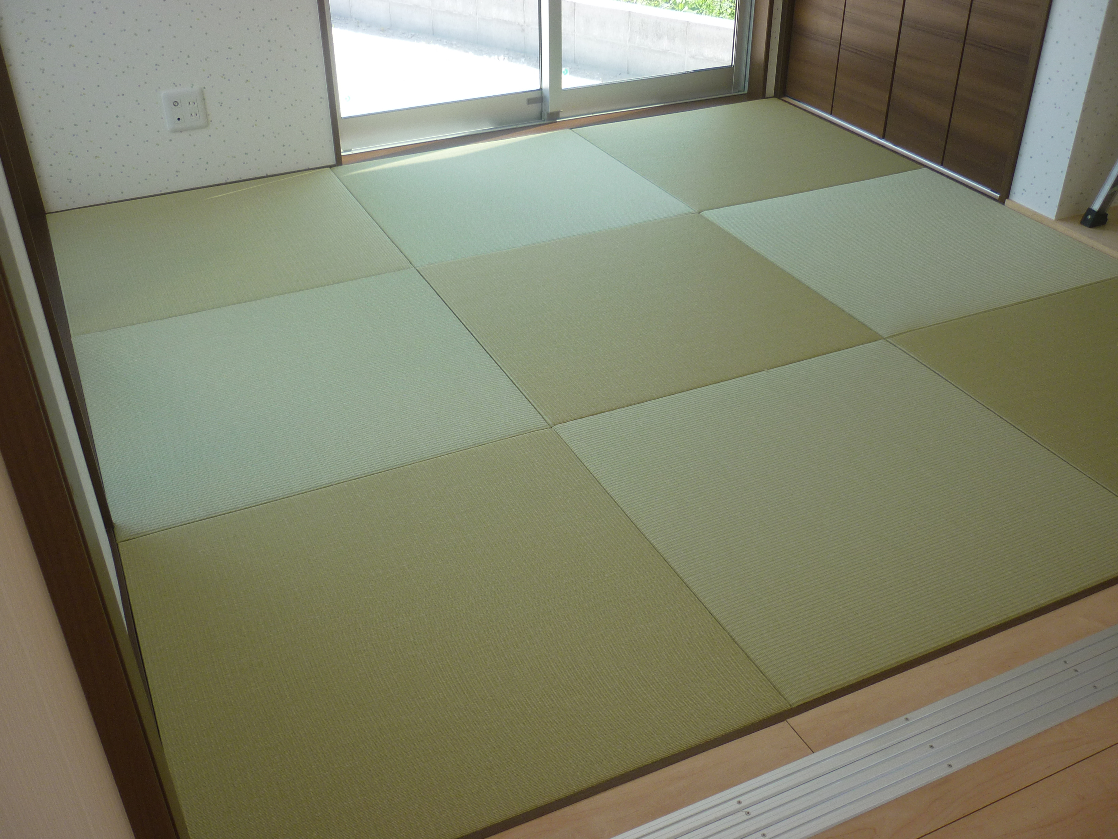 新築ではありませんが・・・ 銀白12 栗色 × 14 灰桜色 の縁付きの表替えです。