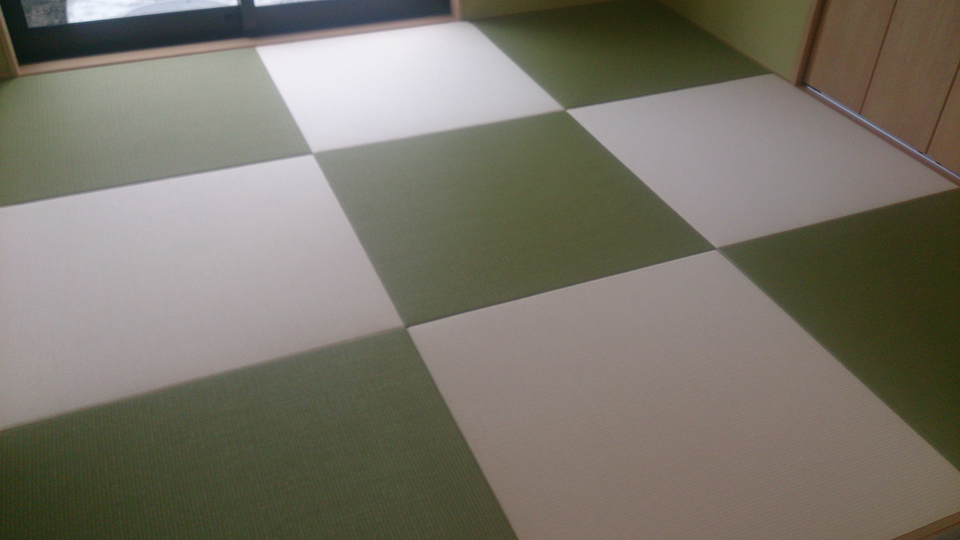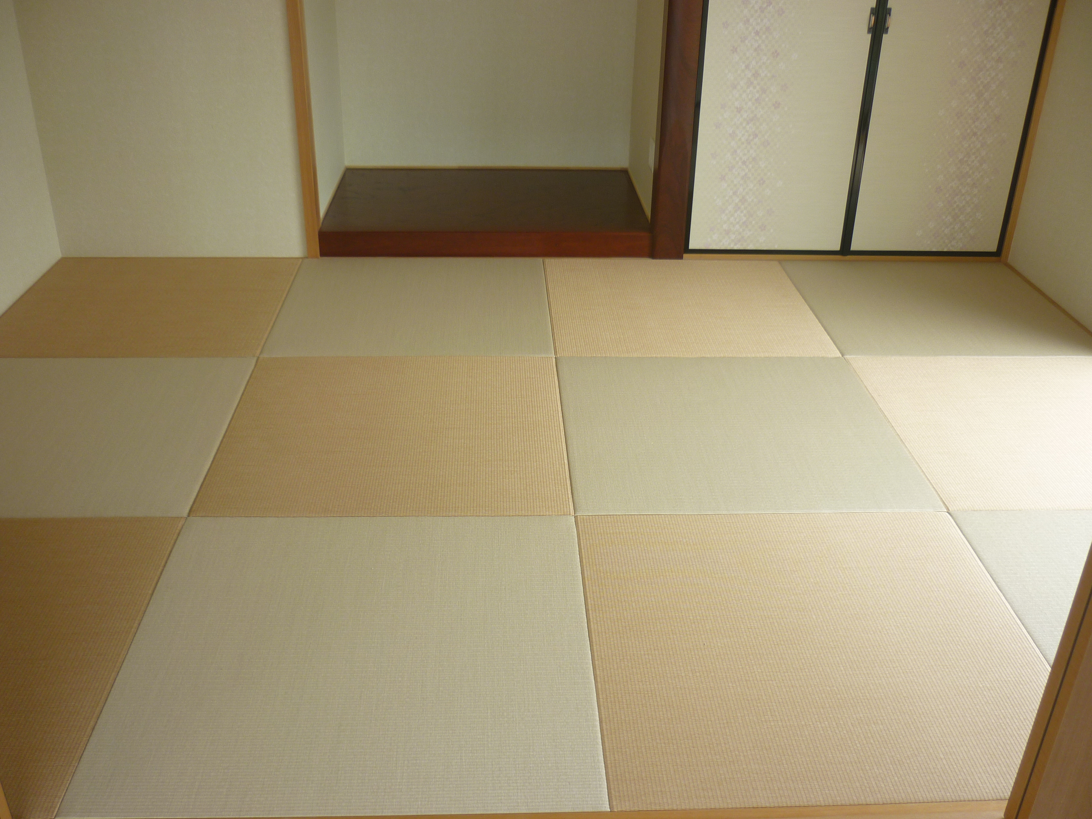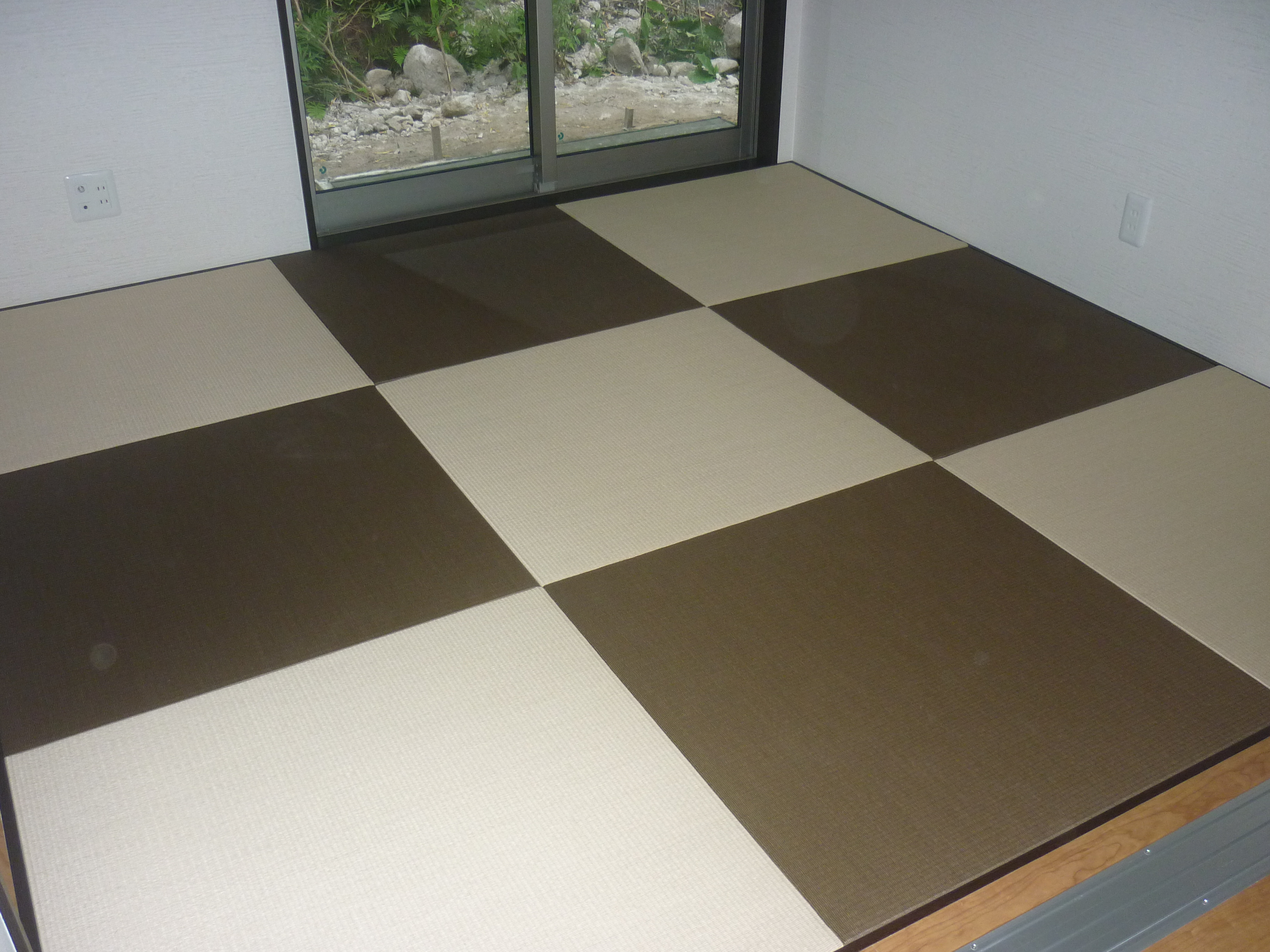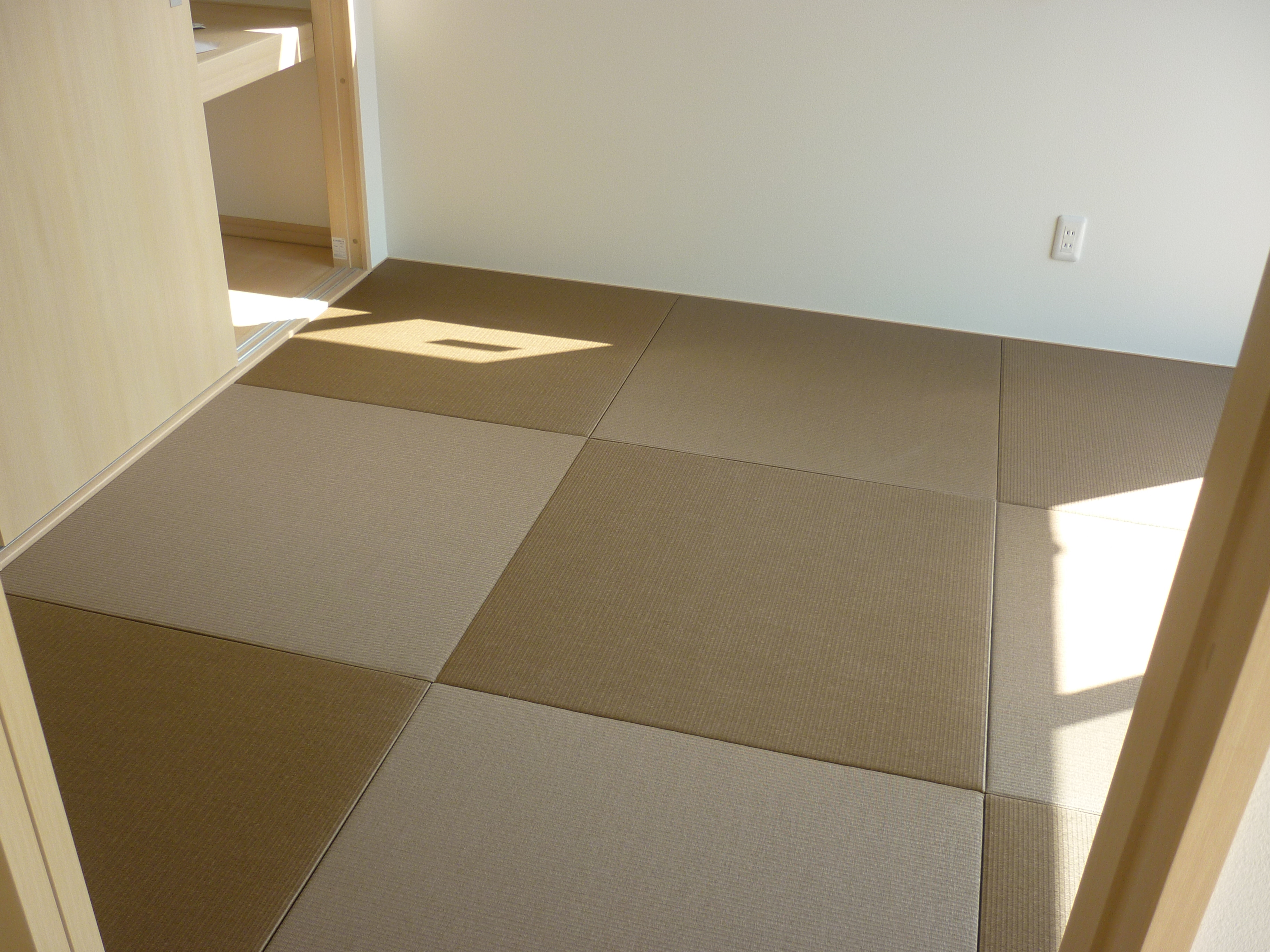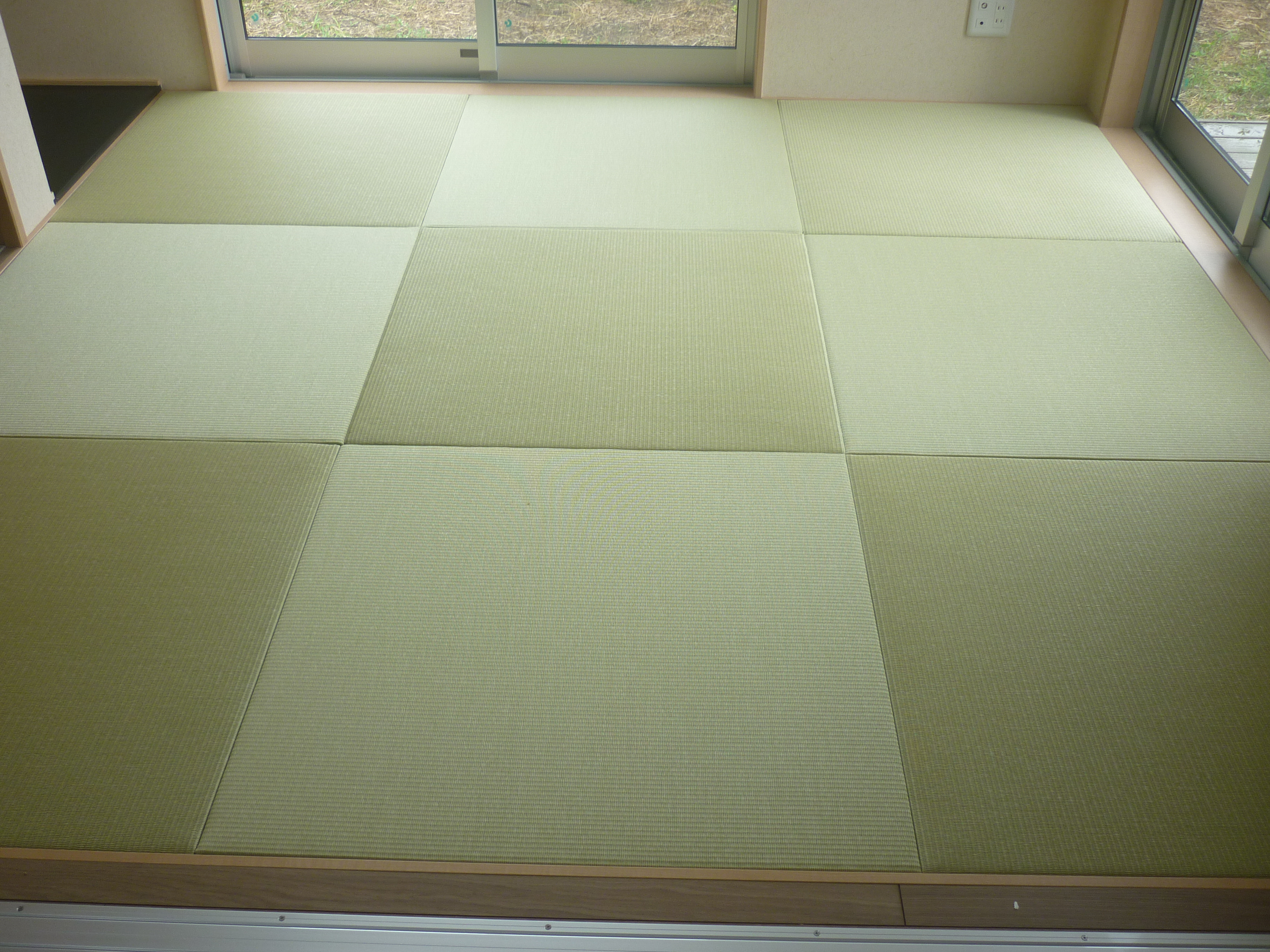 新築ではありませんが・・・ 銀白12 栗色 × 14 灰桜色 の縁付きの表替えです。